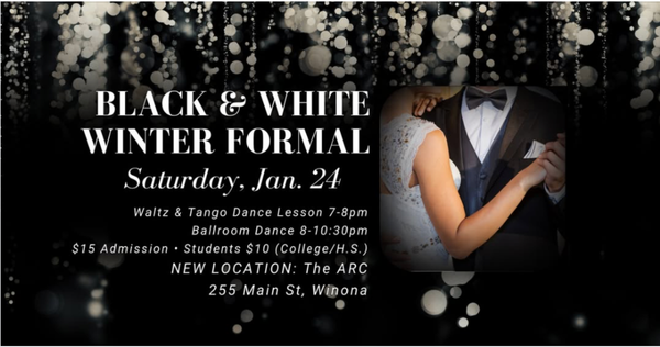 Date: October 11, 2025 Location: Winona Athletic Club (upstairs ballroom) Time: 7-8 pm: Cha-Cha & Waltz Lesson, 8-10:30 pm: Ballroom Dance Cost (cash or card): Students (College/H.S.) = $10, Adults = $15 Think “homecoming,”…