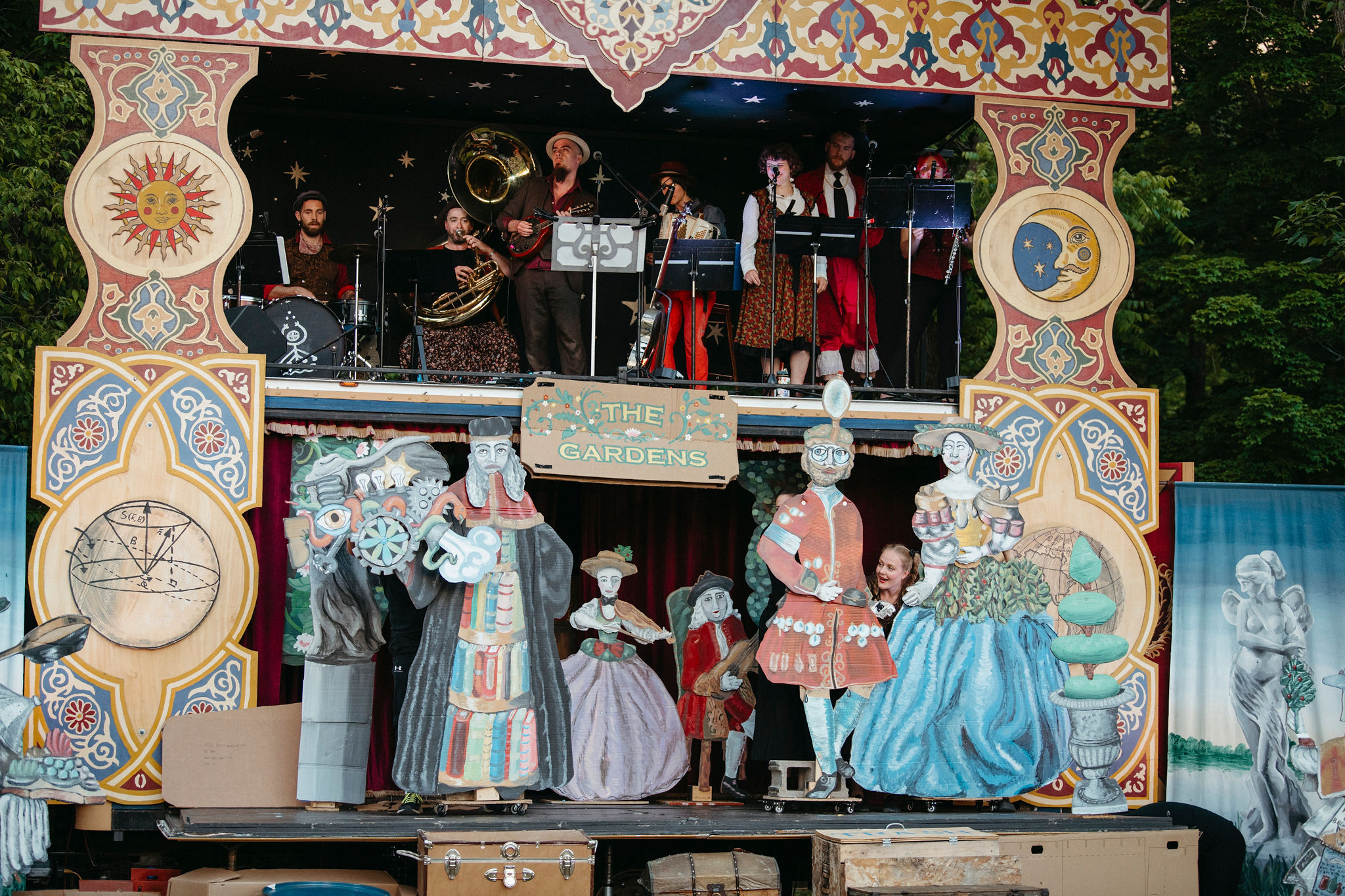“Tigre! Tigre!” features a live band and classically trained vocalists, lavish puppetry and scenic design, and a delightful whirlwind of clowning and physical theater, all performed atop our mobile double-decker theater stage. The show studies humankind’s darkly absurd relationship to technology through the strange intersection of three different major technological revolutions.
