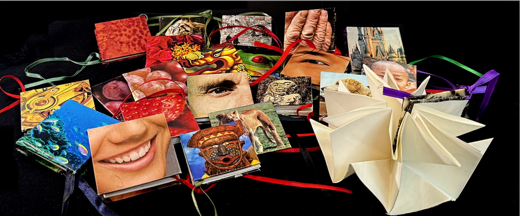 combining folded paper sheets to form origami pages that can be opened, displayed