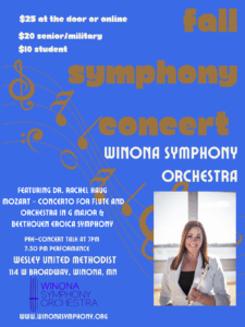 October 25 | 7:30 pm Wesley United Methodist Church Winona, MN Winona Symphony Orchestra Presents Fall Symphonic Concert Featuring Flutist Dr. Rachel Haug The program features a dynamic mix of…
